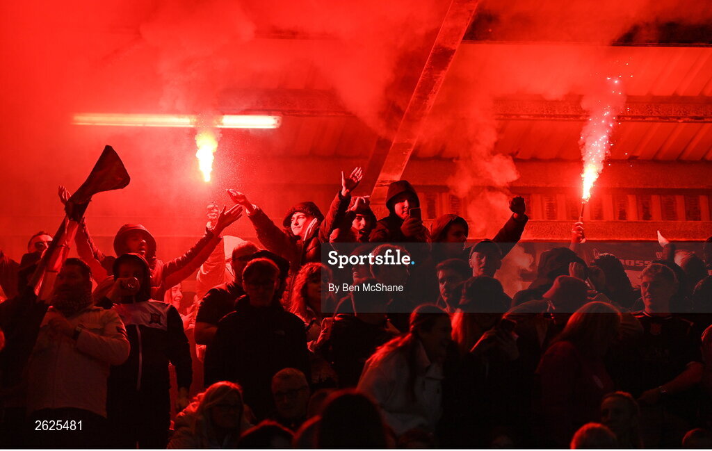 15 September 2023; Dundalk supporters during the Sports Direct Men’s FAI Cup quarter-final match between Galway United and Dundalk at Eamonn Deacy Park in Galway. Photo by Ben McShane/Sportsfile