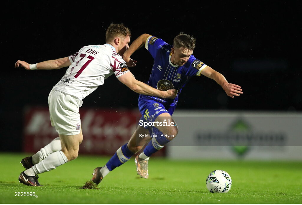 15 September 2023; Darragh Power of Waterford in action against Mikie Rowe of Cobh Ramblers during the SSE Airtricity Men's First Division match between Waterford and Cobh Ramblers at RSC in Waterford. Photo by Michael P Ryan/Sportsfile