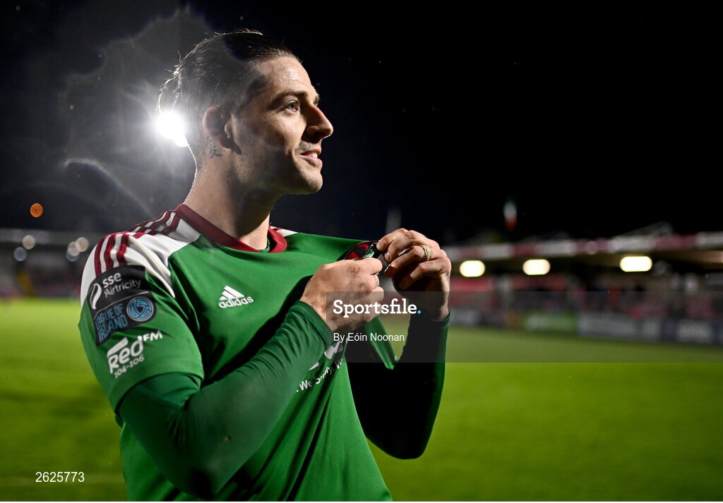 15 September 2023; Ruairi Keating of Cork City celebrates after his side's victory in the Sports Direct Men’s FAI Cup quarter final match between Cork City and Wexford at Turner's Cross in Cork. Photo by Eóin Noonan/Sportsfile