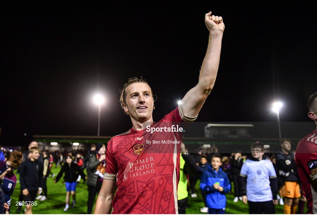 15 September 2023; Dave Hurley of Galway United celebrates after the Sports Direct Men’s FAI Cup quarter-final match between Galway United and Dundalk at Eamonn Deacy Park in Galway. Photo by Ben McShane/Sportsfile