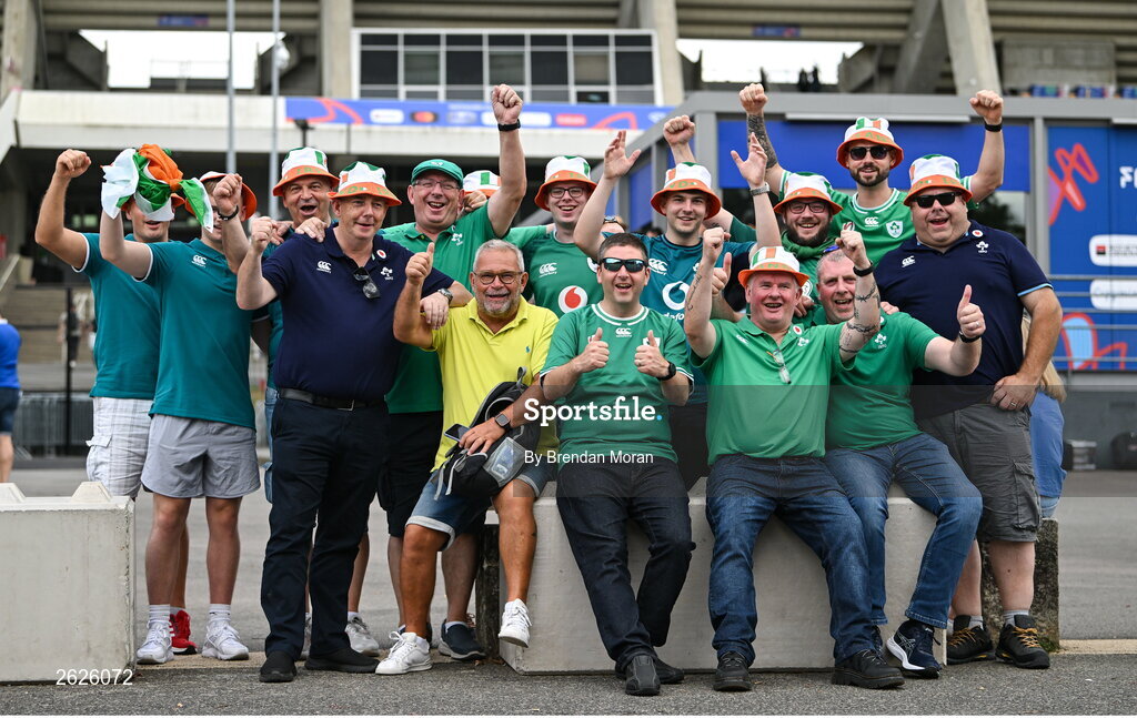 16 September 2023; Ireland supporters before the 2023 Rugby World Cup Pool B match between Ireland and Tonga at Stade de la Beaujoire in Nantes, France. Photo by Brendan Moran/Sportsfile