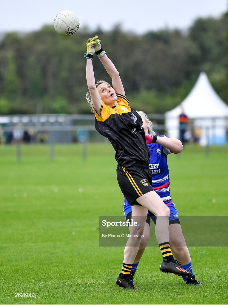16 September 2023; Áine Larkin of Corduff in Dublin in action against St Conleth's in Kildare during the 2023 LGFA/Sports Direct Gaelic4Mothers&Others National Blitz Day at Naomh Mearnóg GAA club in Portmarnock, Dublin. Photo by Piaras Ó Mídheach/Sportsfile
