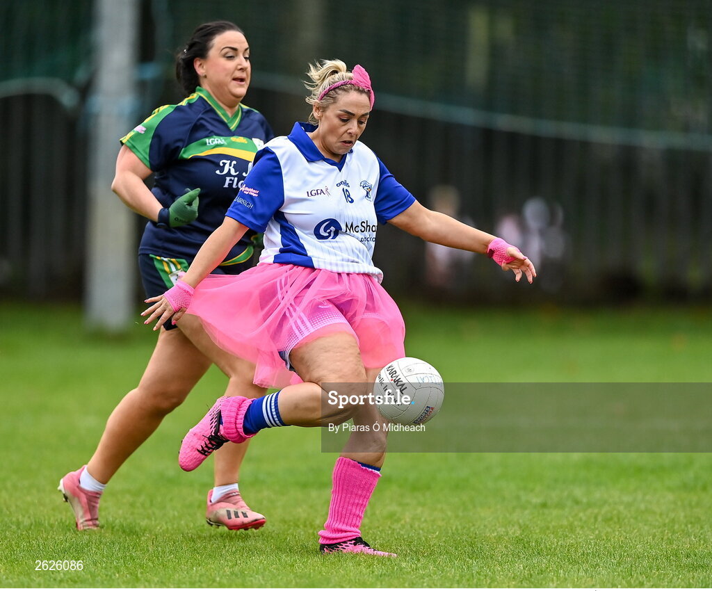 16 September 2023; Donna Trainor of Armagh Harps during the 2023 LGFA/Sports Direct Gaelic4Mothers&Others National Blitz Day at Naomh Mearnóg GAA club in Portmarnock, Dublin. Photo by Piaras Ó Mídheach/Sportsfile