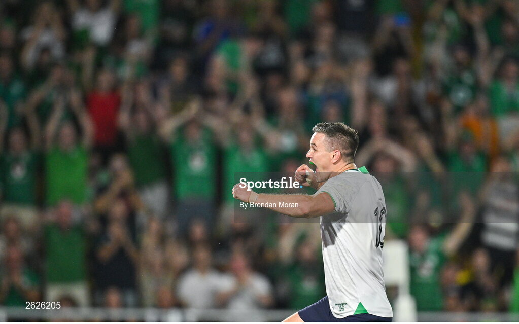 16 September 2023; Jonathan Sexton of Ireland celebrates scoring his side's fourth try to become his country's all-time record points scorer in international rugbyduring the 2023 Rugby World Cup Pool B match between Ireland and Tonga at Stade de la Beaujoire in Nantes, France. Photo by Brendan Moran/Sportsfile