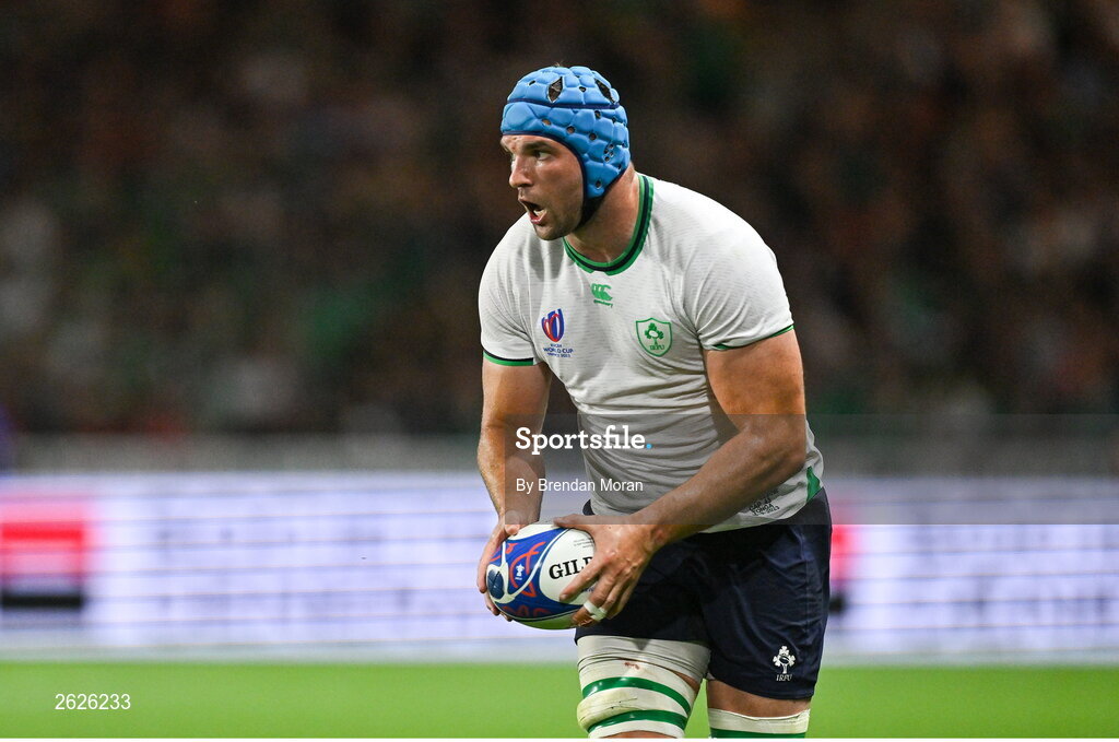 16 September 2023; Tadhg Beirne of Ireland during the 2023 Rugby World Cup Pool B match between Ireland and Tonga at Stade de la Beaujoire in Nantes, France. Photo by Brendan Moran/Sportsfile
