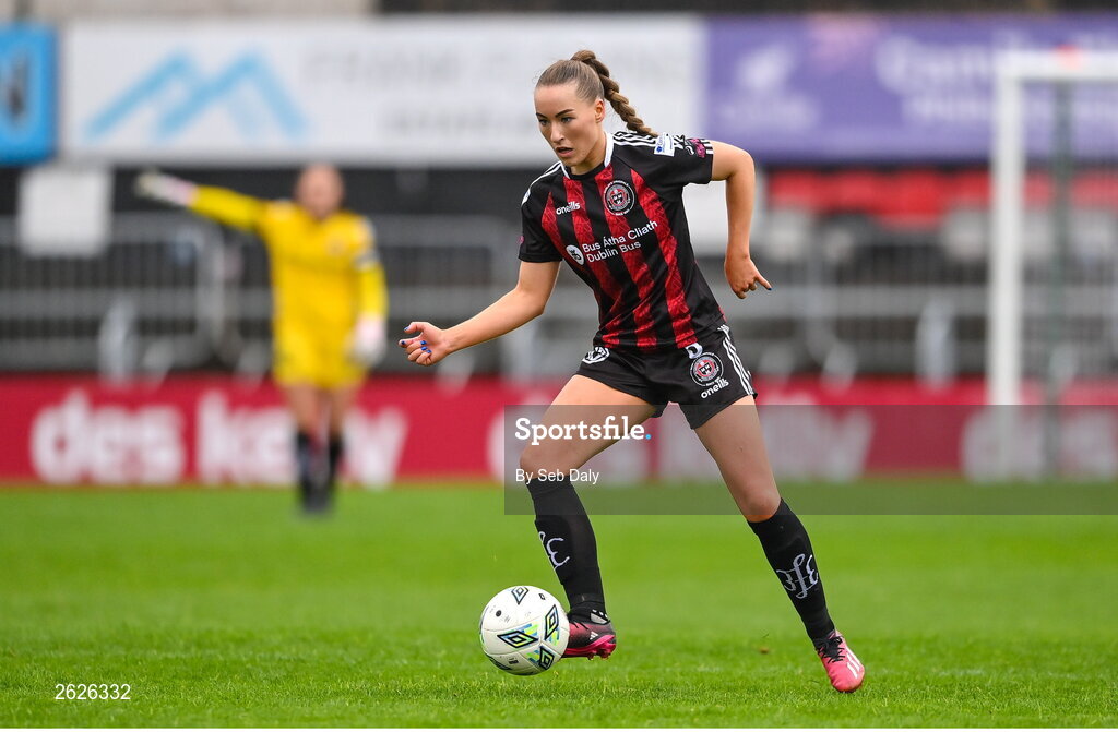 16 September 2023; Fiona Donnelly of Bohemians during the Sports Direct Women's FAI Cup quarter-final match between Bohemians and Sligo Rovers at Dalymount Park in Dublin. Photo by Seb Daly/Sportsfile