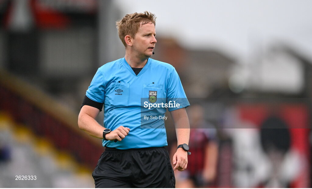 16 September 2023; Referee Daniel Murphy during the Sports Direct Women's FAI Cup quarter-final match between Bohemians and Sligo Rovers at Dalymount Park in Dublin. Photo by Seb Daly/Sportsfile