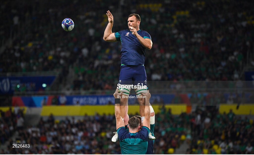 16 September 2023; Tadhg Beirne of Ireland during the warm up before the 2023 Rugby World Cup Pool B match between Ireland and Tonga at Stade de la Beaujoire in Nantes, France. Photo by Brendan Moran/Sportsfile