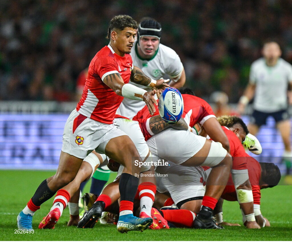16 September 2023; Augustine Pulu of Tonga during the 2023 Rugby World Cup Pool B match between Ireland and Tonga at Stade de la Beaujoire in Nantes, France. Photo by Brendan Moran/Sportsfile