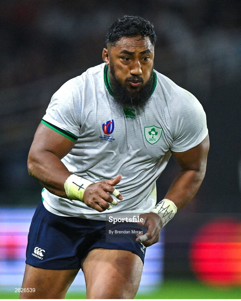 16 September 2023; Bundee Aki of Ireland during the 2023 Rugby World Cup Pool B match between Ireland and Tonga at Stade de la Beaujoire in Nantes, France. Photo by Brendan Moran/Sportsfile
