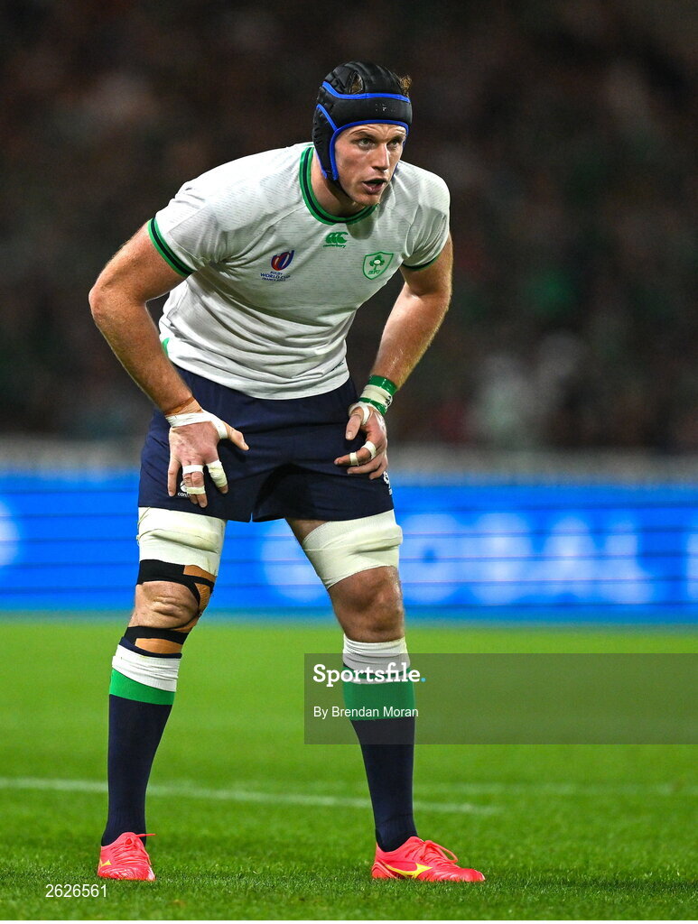 16 September 2023; Ryan Baird of Ireland during the 2023 Rugby World Cup Pool B match between Ireland and Tonga at Stade de la Beaujoire in Nantes, France. Photo by Brendan Moran/Sportsfile