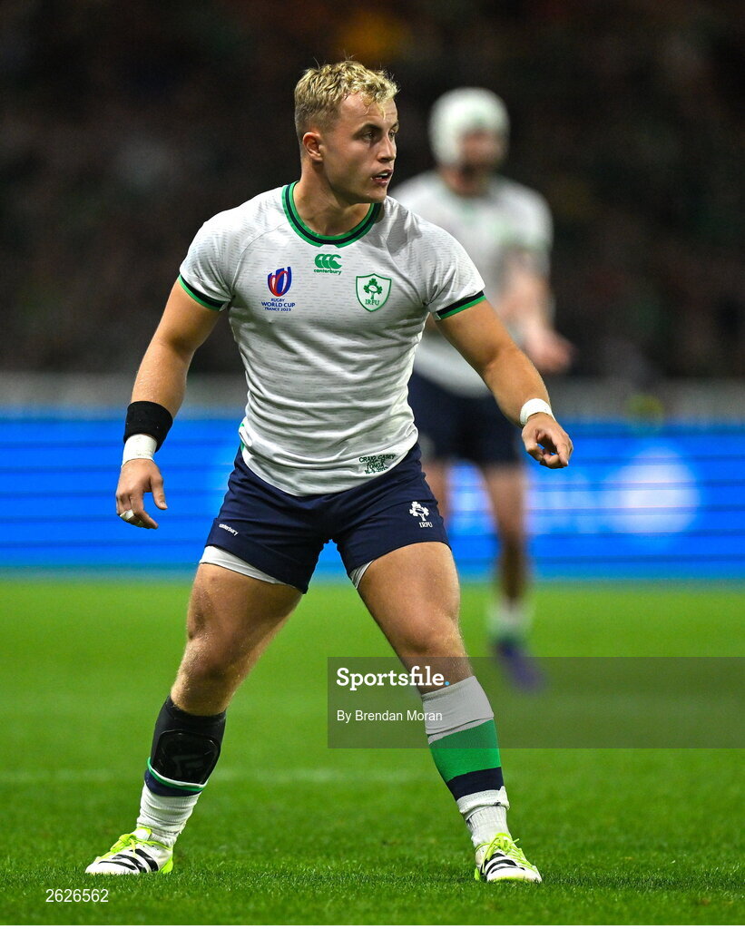 16 September 2023; Craig Casey of Ireland during the 2023 Rugby World Cup Pool B match between Ireland and Tonga at Stade de la Beaujoire in Nantes, France. Photo by Brendan Moran/Sportsfile