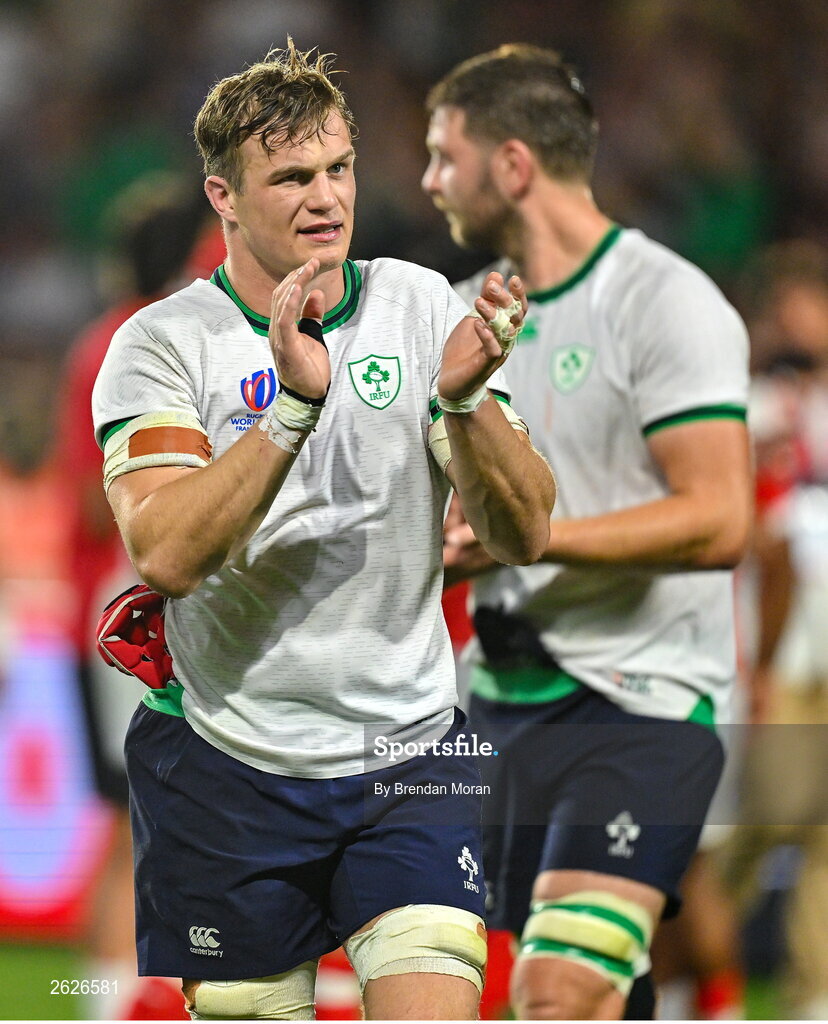 16 September 2023; Josh van der Flier of Ireland after the 2023 Rugby World Cup Pool B match between Ireland and Tonga at Stade de la Beaujoire in Nantes, France. Photo by Brendan Moran/Sportsfile