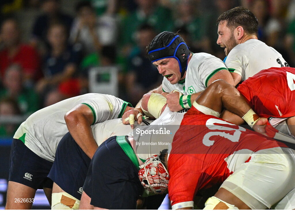 16 September 2023; Ryan Baird and Iain Henderson of Ireland control a maul during the 2023 Rugby World Cup Pool B match between Ireland and Tonga at Stade de la Beaujoire in Nantes, France. Photo by Brendan Moran/Sportsfile