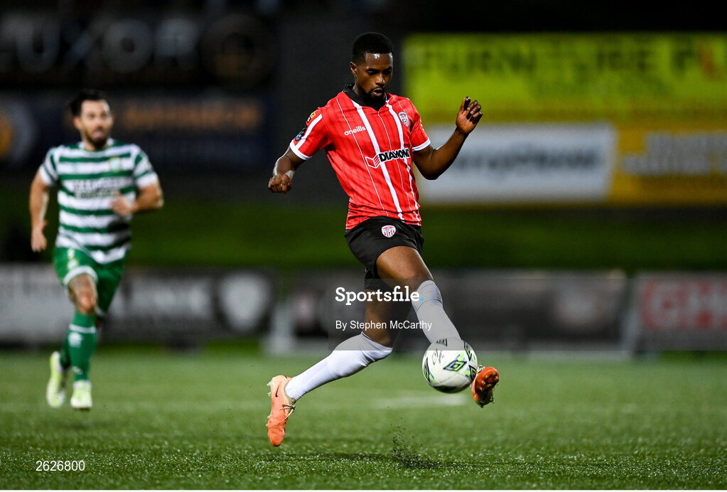 15 September 2023; Sadou Diallo of Derry City during the SSE Airtricity Men's Premier Division match between Derry City and Shamrock Rovers at The Ryan McBride Brandywell Stadium in Derry. Photo by Stephen McCarthy/Sportsfile