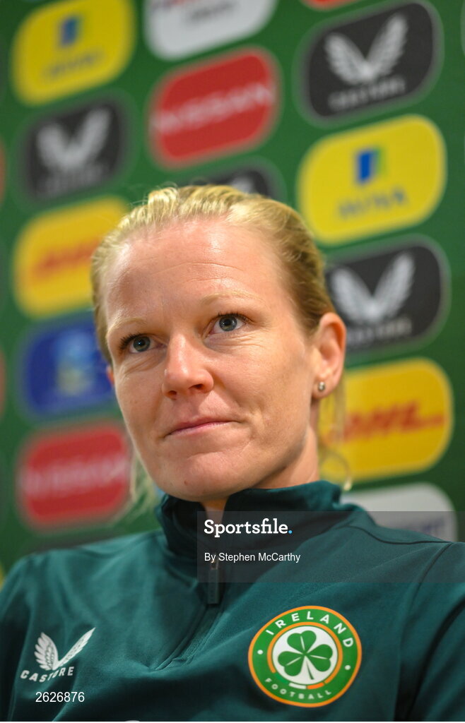 18 September 2023; Diane Caldwell during a Republic of Ireland women press conference at the FAI Headquarters in Abbotstown, Dublin. Photo by Stephen McCarthy/Sportsfile