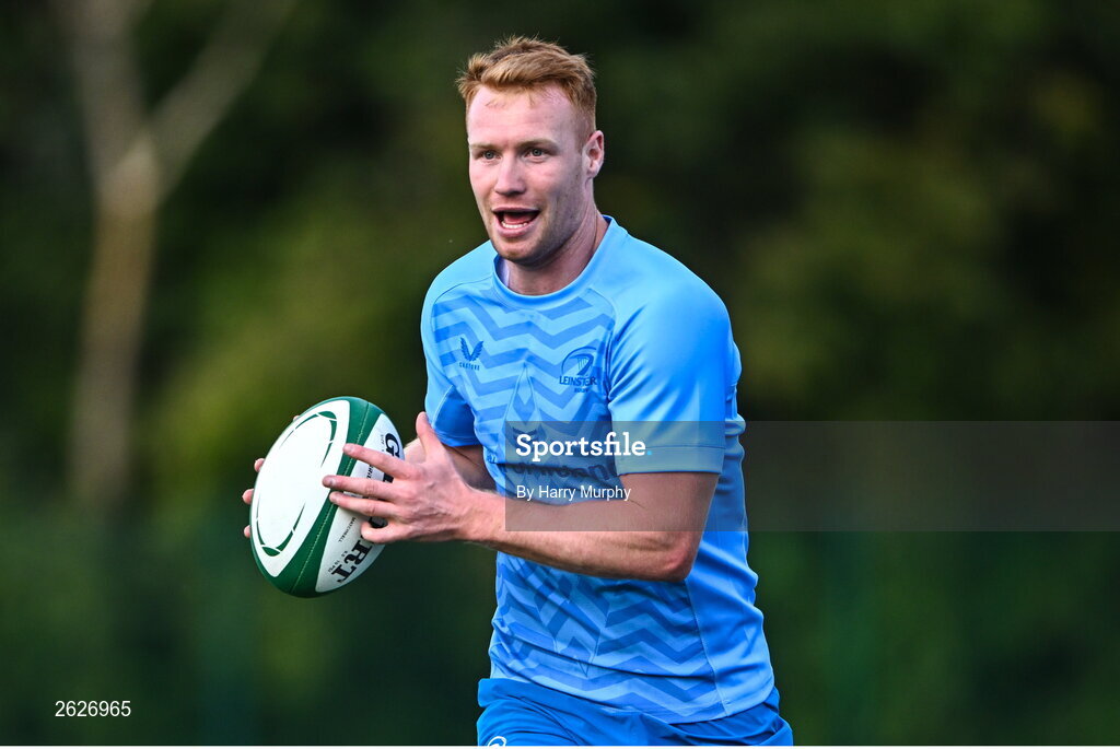 18 September 2023; Ciarán Frawley during a Leinster rugby squad training session at UCD in Dublin. Photo by Harry Murphy/Sportsfile
