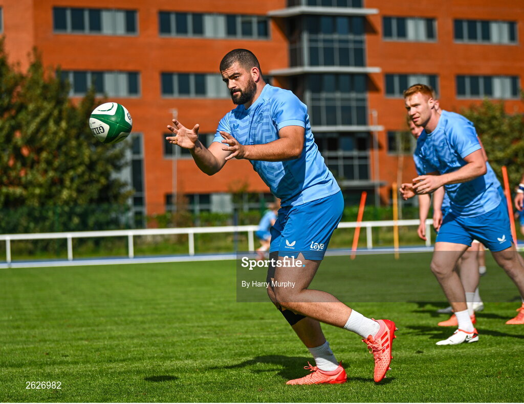 18 September 2023; Rory McGuire during a Leinster rugby squad training session at UCD in Dublin. Photo by Harry Murphy/Sportsfile