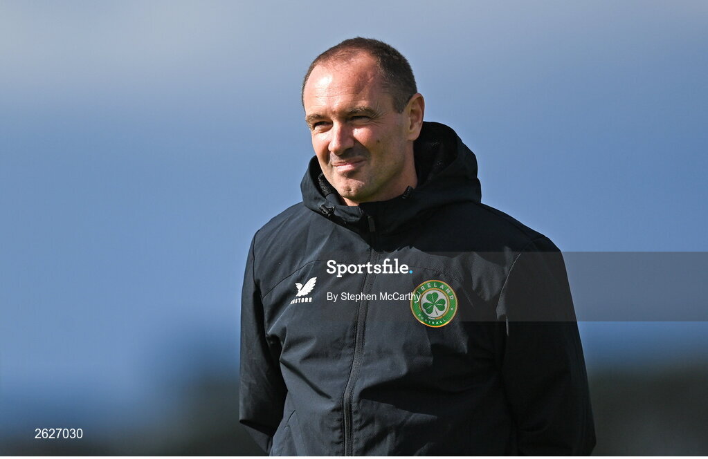18 September 2023; Interim assistant coach Colin Healy during a Republic of Ireland women training session at the FAI National Training Centre in Abbotstown, Dublin. Photo by Stephen McCarthy/Sportsfile