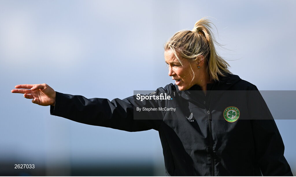 18 September 2023; Interim assistant coach Emma Byrne during a Republic of Ireland women training session at the FAI National Training Centre in Abbotstown, Dublin. Photo by Stephen McCarthy/Sportsfile