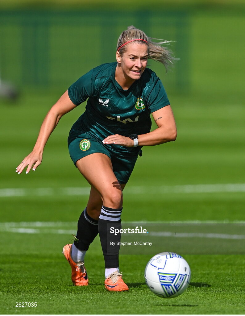 18 September 2023; Lily Agg during a Republic of Ireland women training session at the FAI National Training Centre in Abbotstown, Dublin. Photo by Stephen McCarthy/Sportsfile