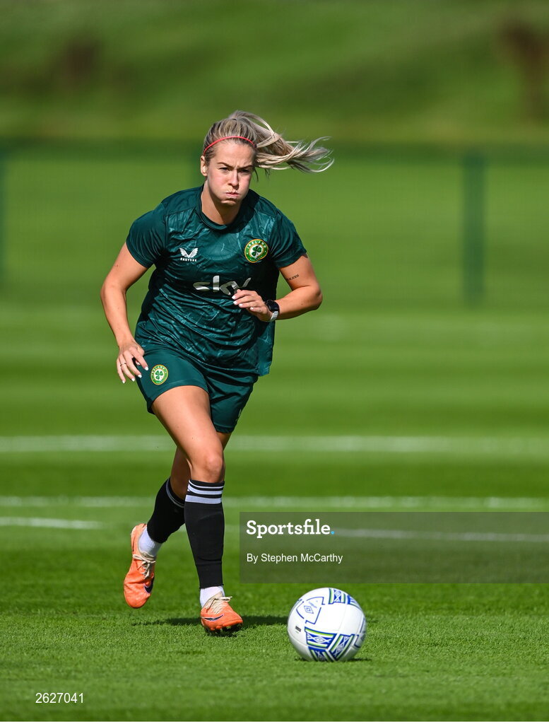 18 September 2023; Lily Agg during a Republic of Ireland women training session at the FAI National Training Centre in Abbotstown, Dublin. Photo by Stephen McCarthy/Sportsfile