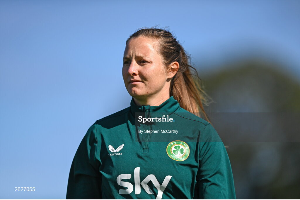 18 September 2023; Kyra Carusa during a Republic of Ireland women training session at the FAI National Training Centre in Abbotstown, Dublin. Photo by Stephen McCarthy/Sportsfile