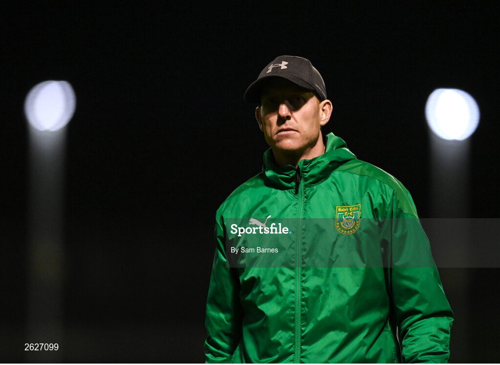 18 September 2023; Usher Celtic manager Wes Doyle during the Leinster Football Senior Cup Final match between Usher Celtic and Bohemians at Dalymount Park in Dublin. Photo by Sam Barnes/Sportsfile