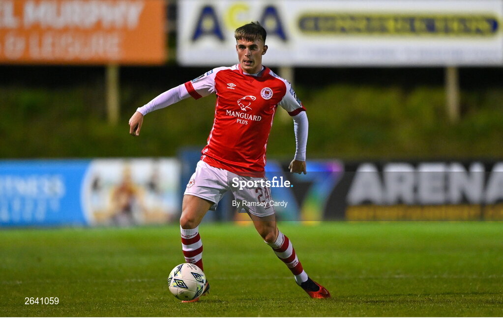 15 September 2023; Adam Murphy of St Patrick's Athletic during the Sports Direct Men’s FAI Cup quarter-final match between Finn Harps and St Patrick's Athletic at Finn Park in Ballybofey, Donegal. Photo by Ramsey Cardy/Sportsfile