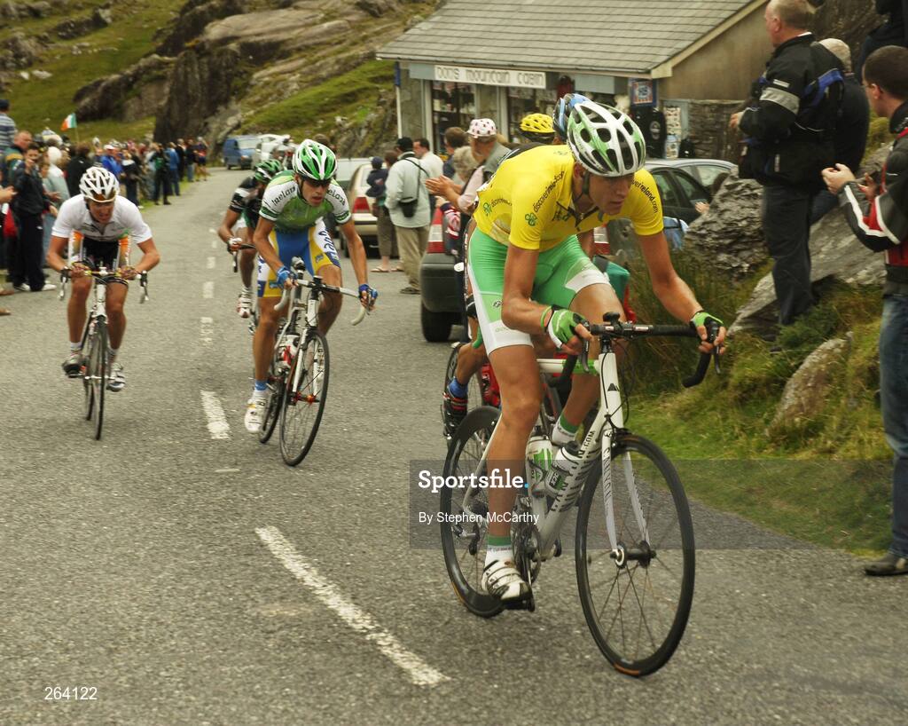 23 August 2007; Race leader Stijn Vandenbergh, Unibet.com, reaches the summit of Healy Pass ahead of Philip Deignan, Irish National Team, and Martijn Maaskant, Rabobank, white jersey. Tour of Ireland, Stage 2, Clonakilty to Killarney. Picture credit: Stephen McCarthy / SPORTSFILE