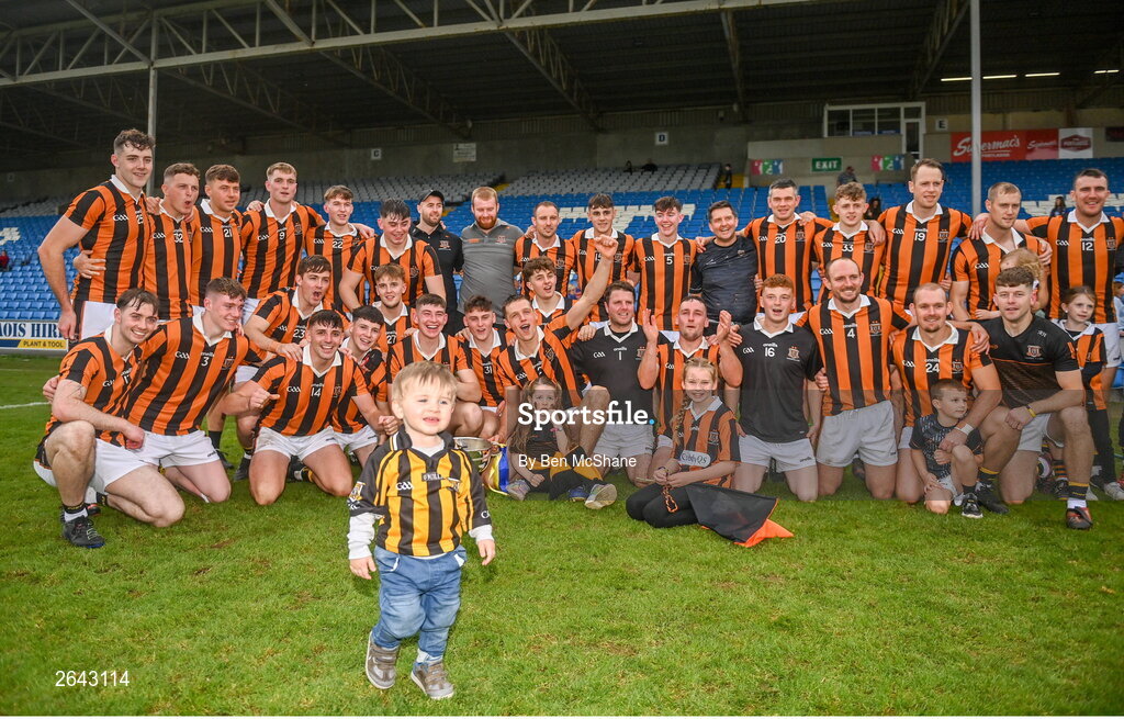 8 October 2023; Camross players celebrates with the cup after the Laois County Senior Hurling Championship Final match between Abbeyleix St Lazarians and Camross at Laois Hire O'Moore Park in Portlaoise, Laois. Photo by Ben McShane/Sportsfile