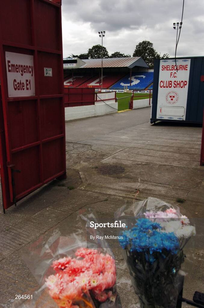 27 August 2007; A selection of tributes to honour the late Oliver (Ollie) Byrne, Chief Executive and majority shareholder of Shelbourne Football Club, outside the club's homeground. Tolka Park, Richmond Road, Drumcondra, Dublin. Picture credit; Ray McManus / SPORTSFILE