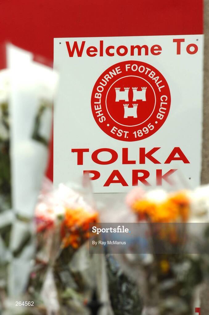 27 August 2007; A selection of tributes to honour the late Oliver (Ollie) Byrne, Chief Executive and majority shareholder of Shelbourne Football Club, outside the club's homeground. Tolka Park, Richmond Road, Drumcondra, Dublin. Picture credit; Ray McManus / SPORTSFILE