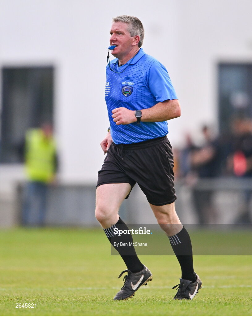 8 October 2023; Referee Padraig Dunne during the Laois County Senior Hurling Championship Final match between Abbeyleix St Lazarians and Camross at Laois Hire O'Moore Park in Portlaoise, Laois. Photo by Ben McShane/Sportsfile