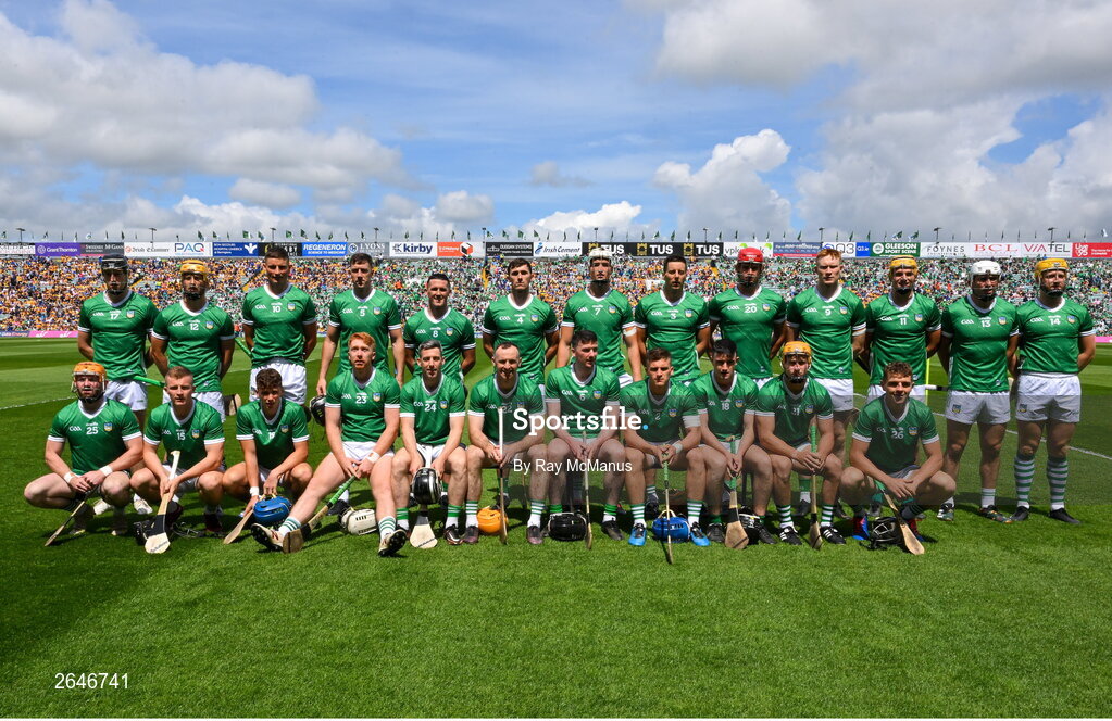 11 June 2023; The Limerick squad before the Munster GAA Hurling GAA Championship Final match between Clare and Limerick at TUS Gaelic Grounds in Limerick. Photo by Ray McManus/Sportsfile