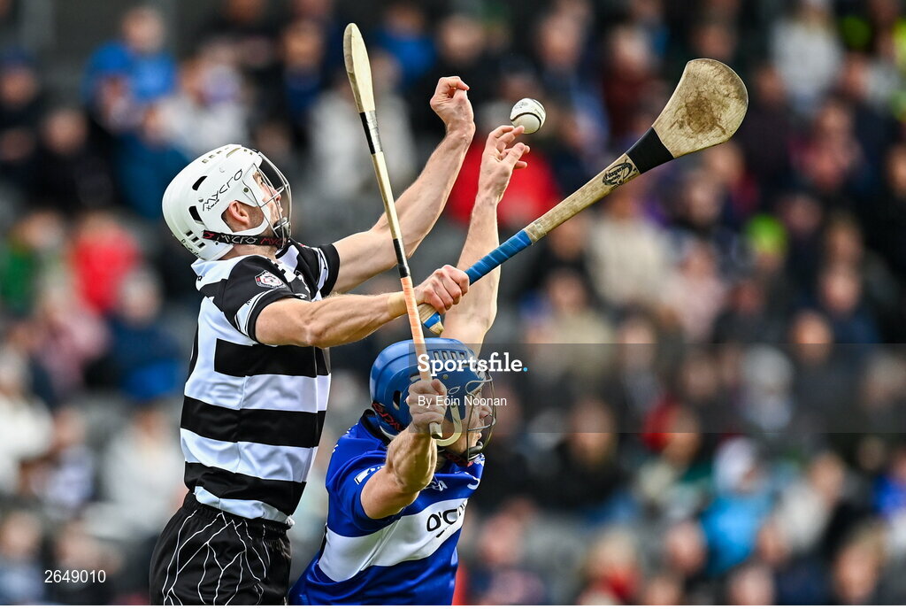 15 October 2023; Luke O'Farrell of Midleton in action against Conor O'Sullivan of Sarsfields during the Cork County Premier Senior Club Hurling Championship final between Sarsfields and Midleton at Páirc Uí Chaoimh in Cork. Photo by Eóin Noonan/Sportsfile