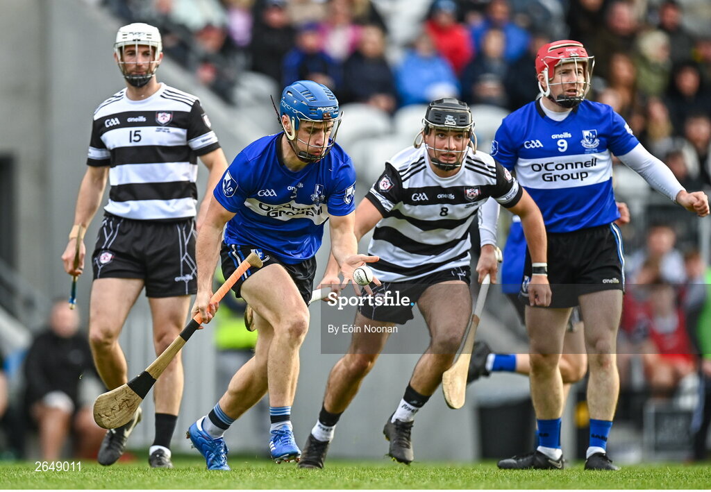 15 October 2023; Conor O'Sullivan of Sarsfields in action against Mikey Finn of Midleton during the Cork County Premier Senior Club Hurling Championship final between Sarsfields and Midleton at Páirc Uí Chaoimh in Cork. Photo by Eóin Noonan/Sportsfile