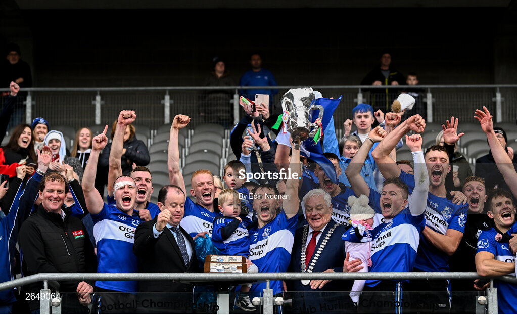 15 October 2023; Sarsfields captain Conor O'Sullivan lifting the cup after the Cork County Premier Senior Club Hurling Championship final between Sarsfields and Midleton at Páirc Uí Chaoimh in Cork. Photo by Eóin Noonan/Sportsfile