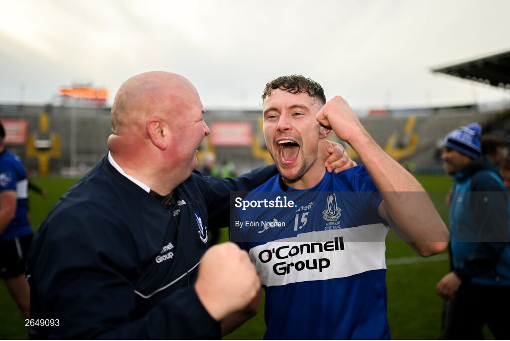 15 October 2023; Aaron Myers of Sarsfields, right, celebrates after the Cork County Premier Senior Club Hurling Championship final between Sarsfields and Midleton at Páirc Uí Chaoimh in Cork. Photo by Eóin Noonan/Sportsfile