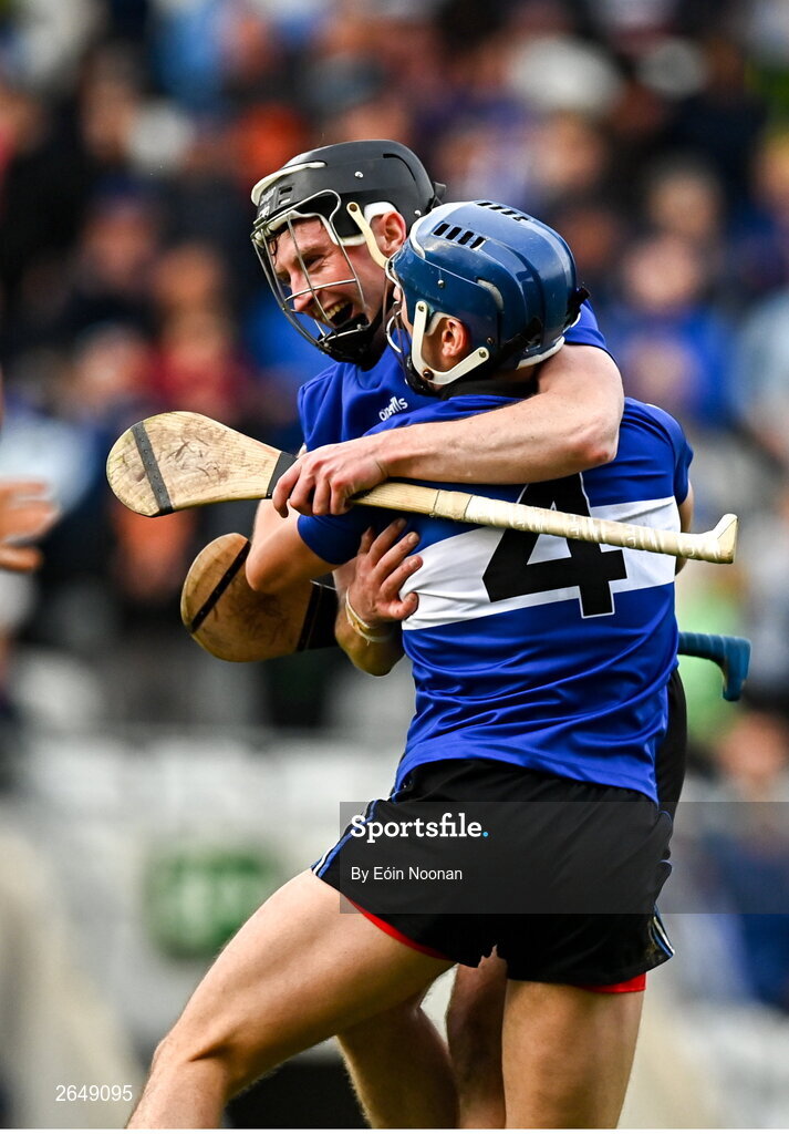 15 October 2023; Jack O'Connor of Sarsfields, left, celebrates with team-mate Paul Leopold after the Cork County Premier Senior Club Hurling Championship final between Sarsfields and Midleton at Páirc Uí Chaoimh in Cork. Photo by Eóin Noonan/Sportsfile