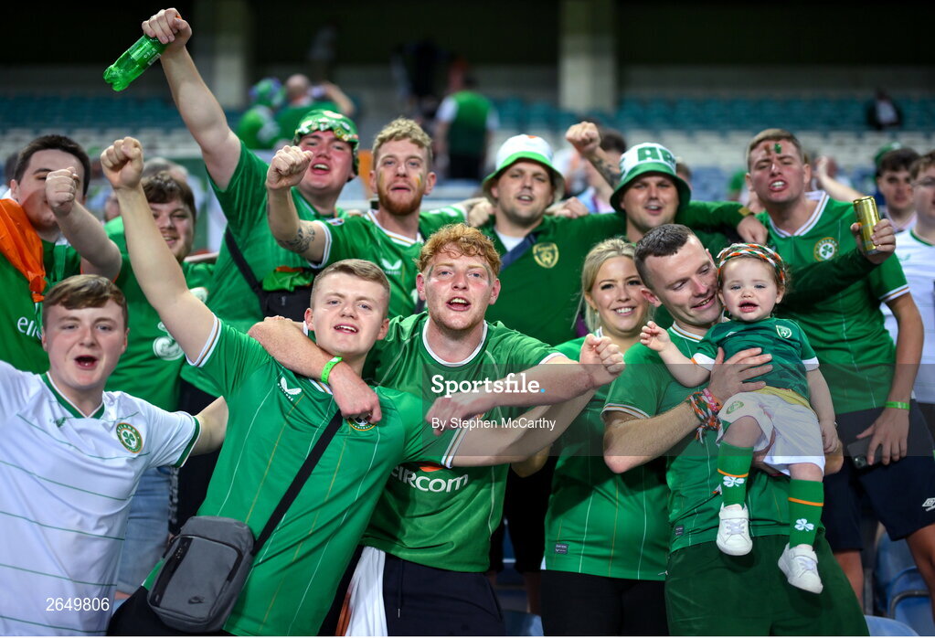 16 October 2023; Republic of Ireland supporters before the UEFA EURO 2024 Championship qualifying group B match between Gibraltar and Republic of Ireland at Estádio Algarve in Faro, Portugal. Photo by Stephen McCarthy/Sportsfile