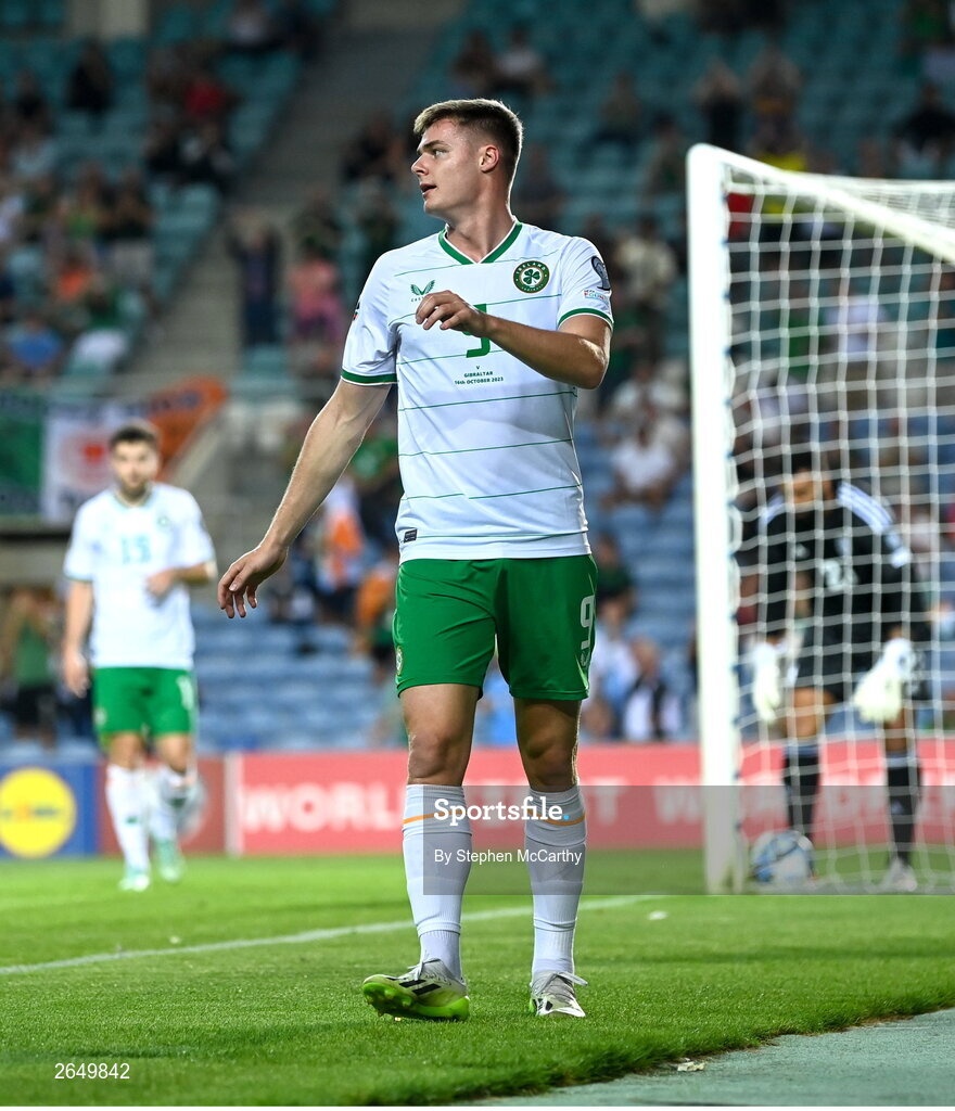 16 October 2023; Evan Ferguson of Republic of Ireland after scoring their side's first goal during the UEFA EURO 2024 Championship qualifying group B match between Gibraltar and Republic of Ireland at Estádio Algarve in Faro, Portugal. Photo by Stephen McCarthy/Sportsfile