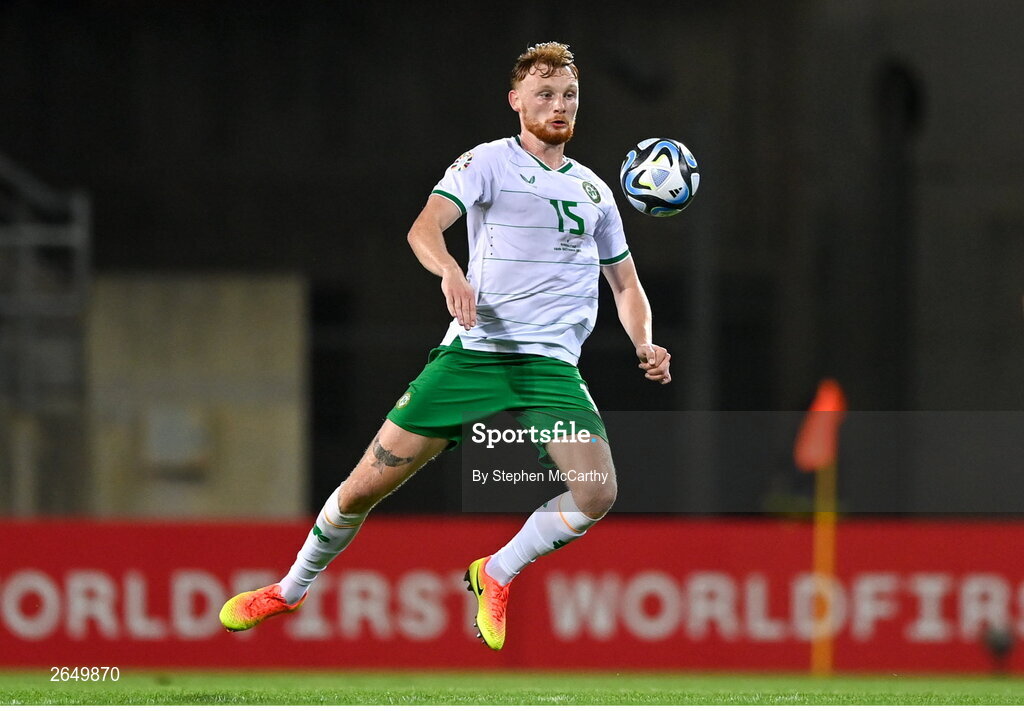 16 October 2023; Liam Scales of Republic of Ireland during the UEFA EURO 2024 Championship qualifying group B match between Gibraltar and Republic of Ireland at Estádio Algarve in Faro, Portugal. Photo by Stephen McCarthy/Sportsfile