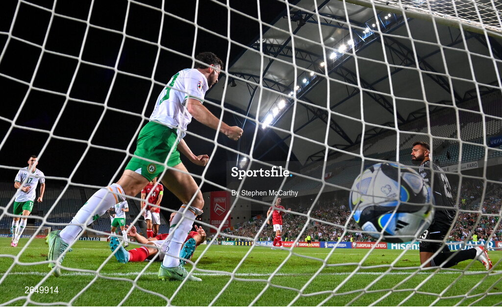 16 October 2023; Mikey Johnston of Republic of Ireland celebrates after scoring his side's second goal during the UEFA EURO 2024 Championship qualifying group B match between Gibraltar and Republic of Ireland at Estádio Algarve in Faro, Portugal. Photo by Stephen McCarthy/Sportsfile