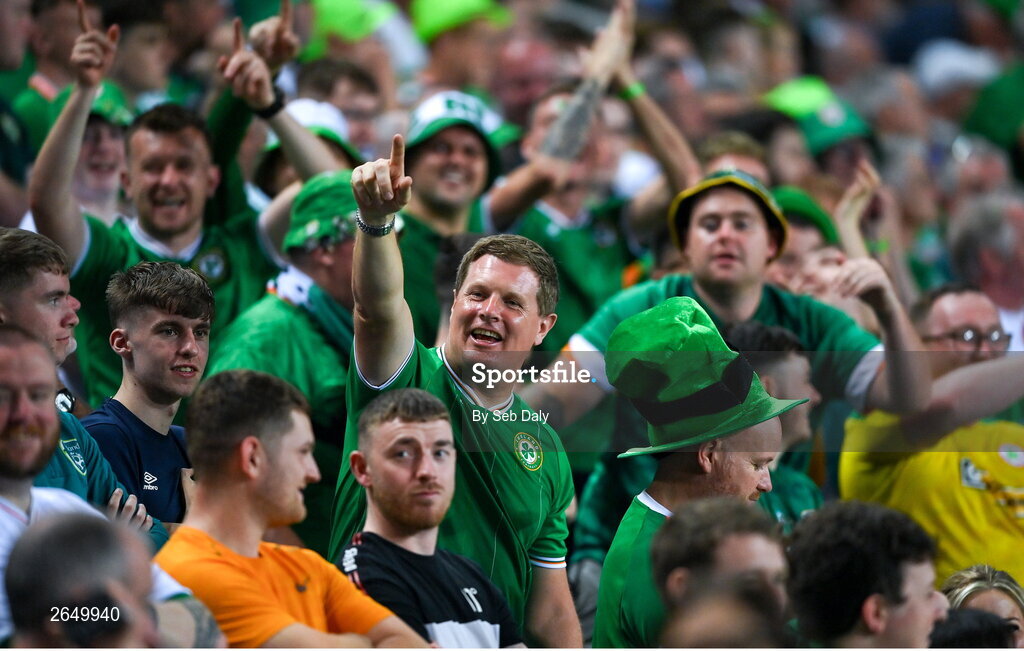 16 October 2023; Republic of Ireland supporters during the UEFA EURO 2024 Championship qualifying group B match between Gibraltar and Republic of Ireland at Estádio Algarve in Faro, Portugal. Photo by Seb Daly/Sportsfile