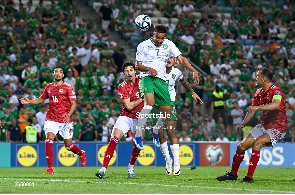 16 October 2023; Callum Robinson of Republic of Ireland scores his side's fourth goal during the UEFA EURO 2024 Championship qualifying group B match between Gibraltar and Republic of Ireland at Estádio Algarve in Faro, Portugal. Photo by Stephen McCarthy/Sportsfile