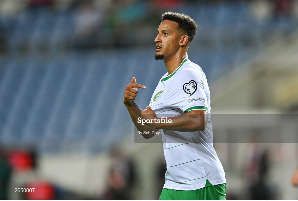 16 October 2023; Callum Robinson of Republic of Ireland celebrates after scoring his side's fourth goal during the UEFA EURO 2024 Championship qualifying group B match between Gibraltar and Republic of Ireland at Estádio Algarve in Faro, Portugal. Photo by Seb Daly/Sportsfile