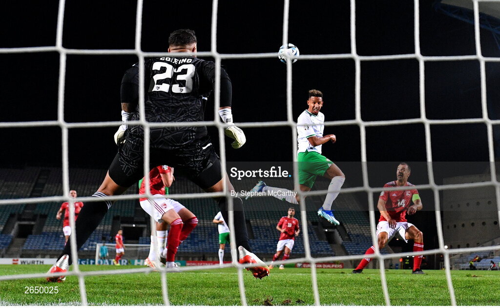 16 October 2023; Callum Robinson of Republic of Ireland scores his side's fourth goal during the UEFA EURO 2024 Championship qualifying group B match between Gibraltar and Republic of Ireland at Estádio Algarve in Faro, Portugal. Photo by Stephen McCarthy/Sportsfile