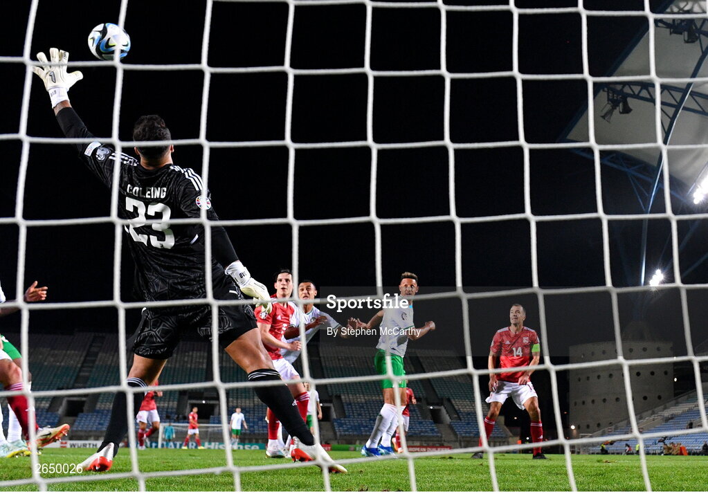 16 October 2023; Callum Robinson of Republic of Ireland scores his side's fourth goal during the UEFA EURO 2024 Championship qualifying group B match between Gibraltar and Republic of Ireland at Estádio Algarve in Faro, Portugal. Photo by Stephen McCarthy/Sportsfile