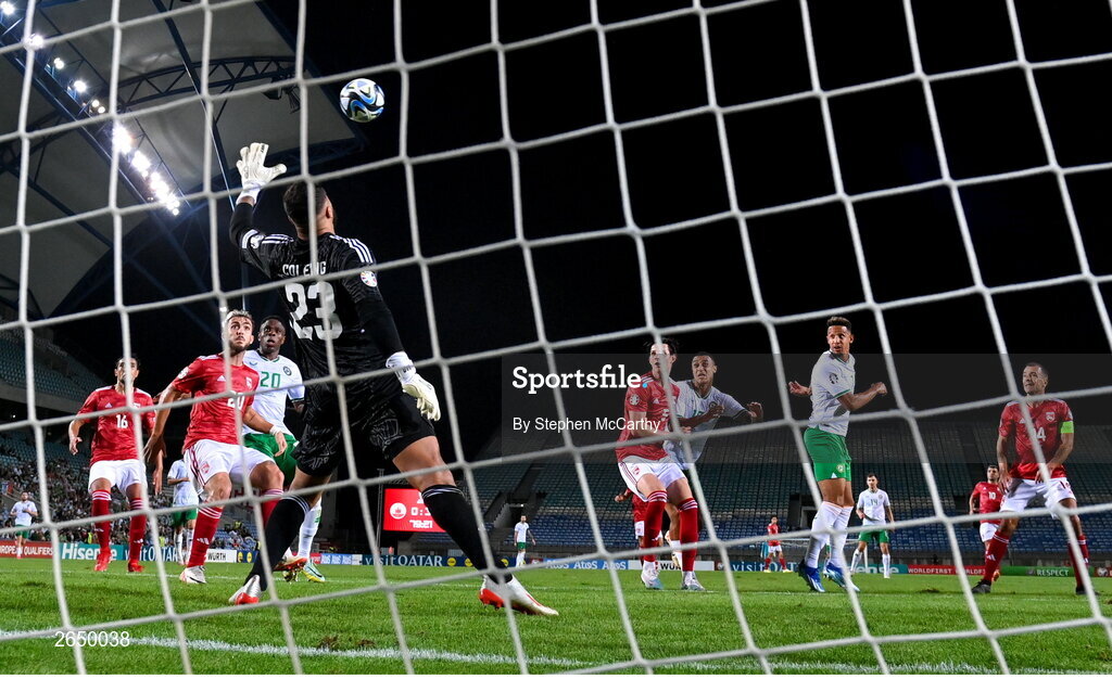 16 October 2023; Callum Robinson of Republic of Ireland scores his side's fourth goal during the UEFA EURO 2024 Championship qualifying group B match between Gibraltar and Republic of Ireland at Estádio Algarve in Faro, Portugal. Photo by Stephen McCarthy/Sportsfile